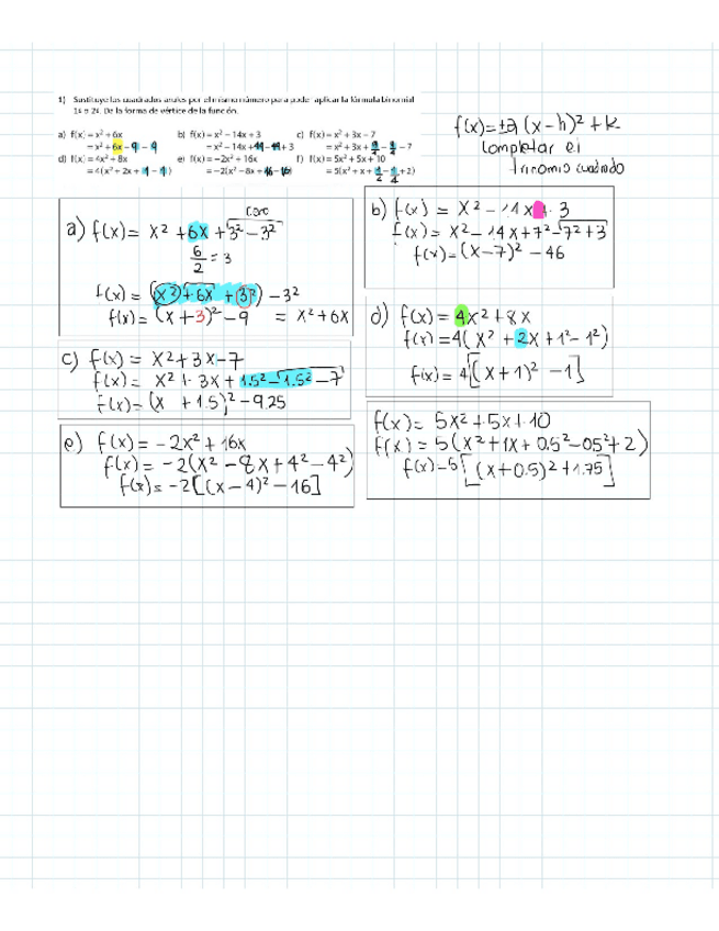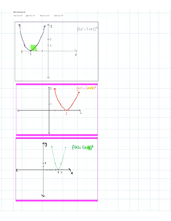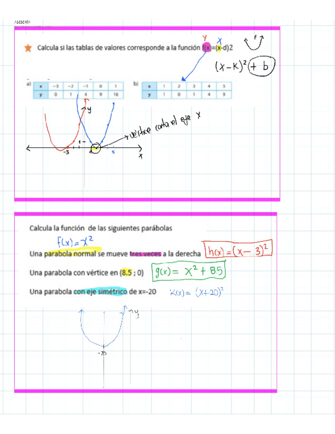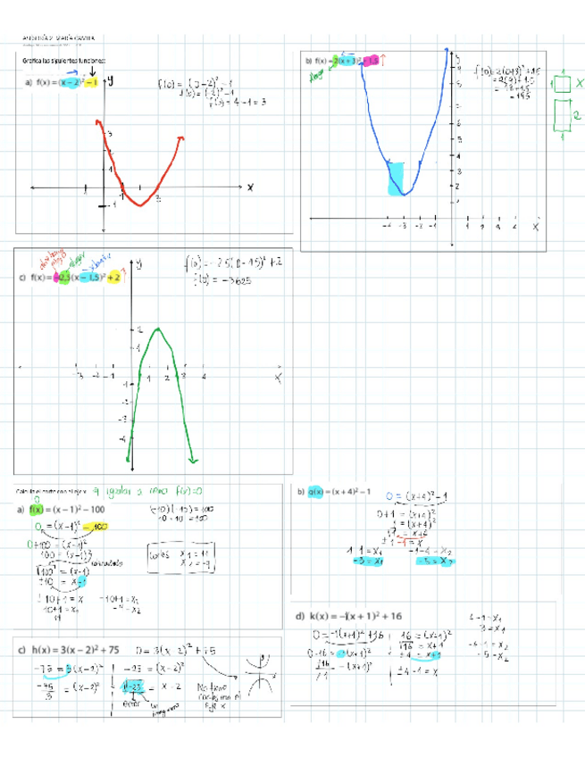 transformaciones, cortes ejex, gráficas de cuadráticas