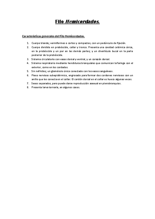 Resumen del libro 'Hickman' de la parte de Hemicordados. Este es el libro que utiliza este profesor para dar la clase y aquí esta el resumen de lo que usa y pregunta en examen.