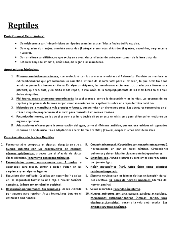 Resumen del libro 'Hickman' de la parte de Reptiles. Este es el libro que utiliza este profesor para dar la clase y aquí esta el resumen de lo que usa y pregunta en examen.