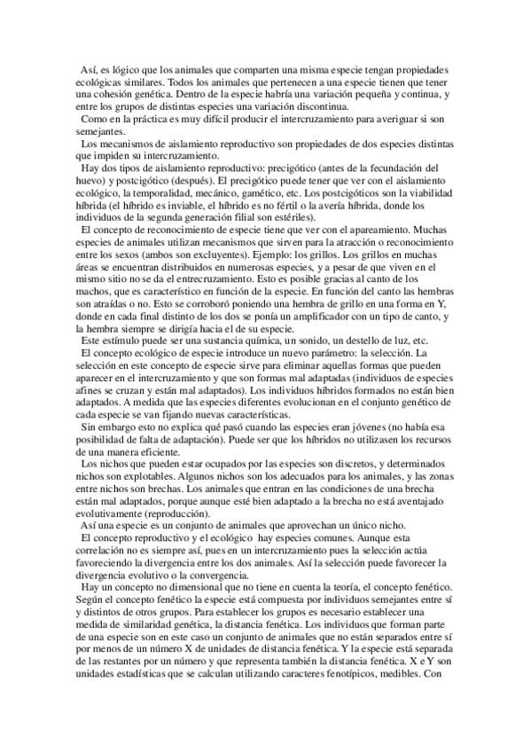 Conceptos en Zoología: Concepto de especie, Mecanismo de aislamiento reproductivo, medios de aguas continentales...