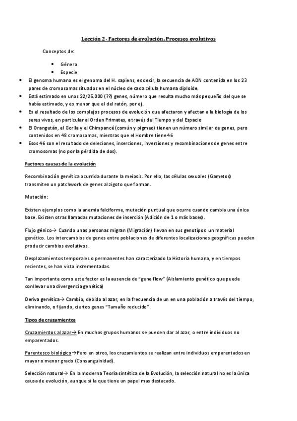 He publicado nuevos apuntes de 3º Antropología Física: Lección 2- Factores de evolución. Procesos evolutivos.pdf