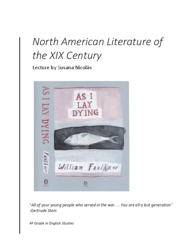 Al bloque II (literatura del renacimiento americano) le faltan los autores H. D. Thoreau, N. Hawthrone y H. Beecher Stowe. De resto, están todos los apuntes de clase recopilados en un solo archivo pdf (sin resumir, son apuntes totales).