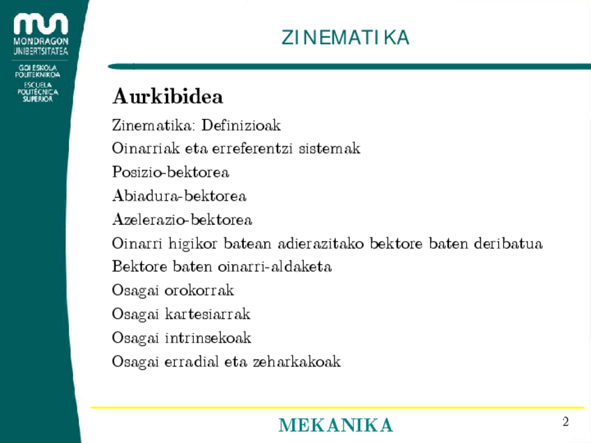 He publicado nuevos apuntes de 2º Mecánica: Zinematika ariketak 2zatia.pdf