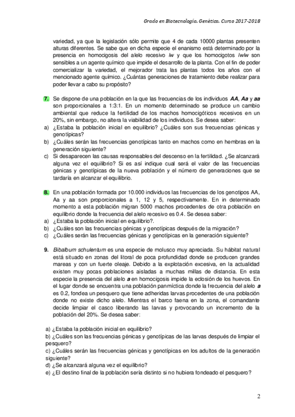 He publicado nuevos ejercicios de 2º Genética: Tema genética de poblaciones - Problemas.pdf