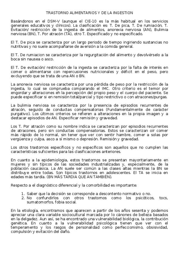 He publicado nuevos apuntes de 2º Psicopatología I: TRASTORNO ALIMENTARIOS Y DE LA INGESTION.docx