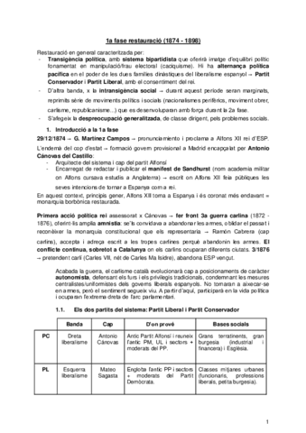 He publicado nuevos apuntes de Historia de España: 1a Fase Restauració