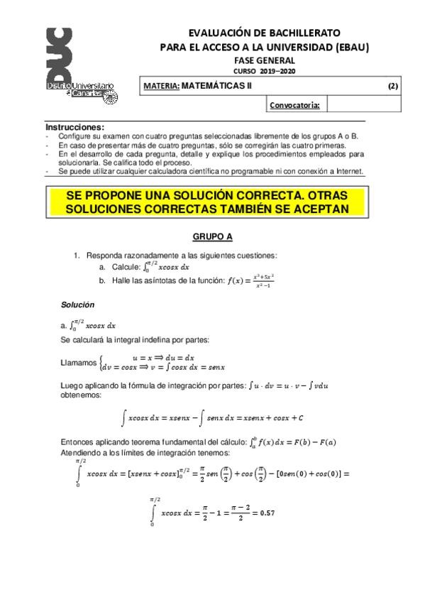 EXÁMENES EBAU MATEMÁTICAS RESUELTOS