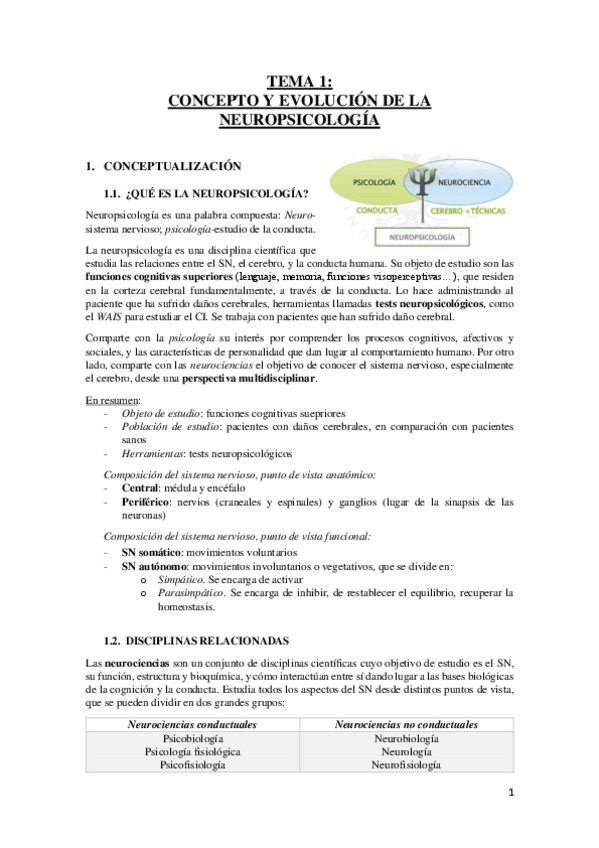 Apuntes de la asignatura neuropsicología