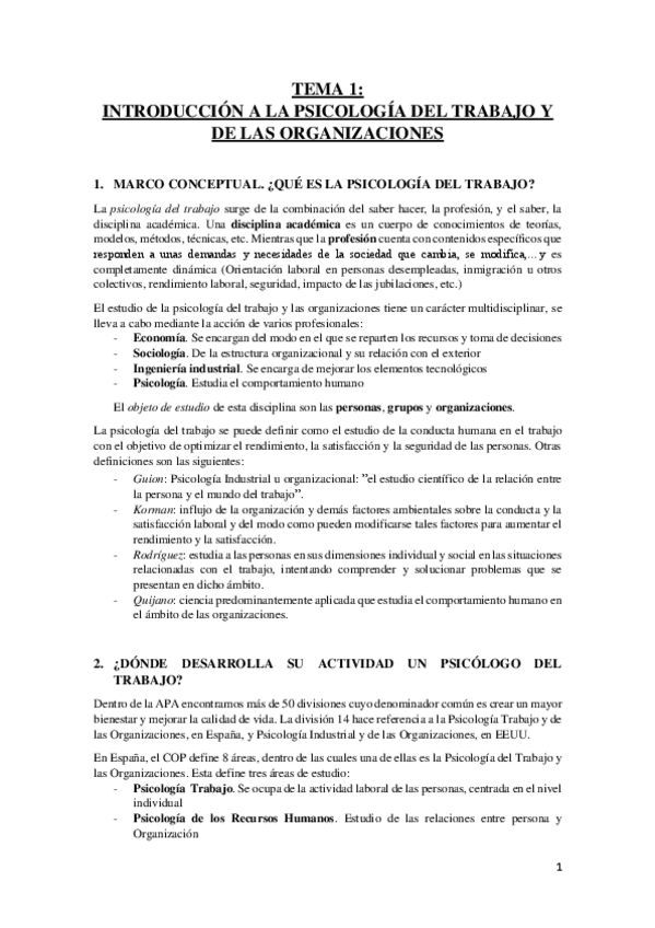 Apuntes Psicología de trabajo