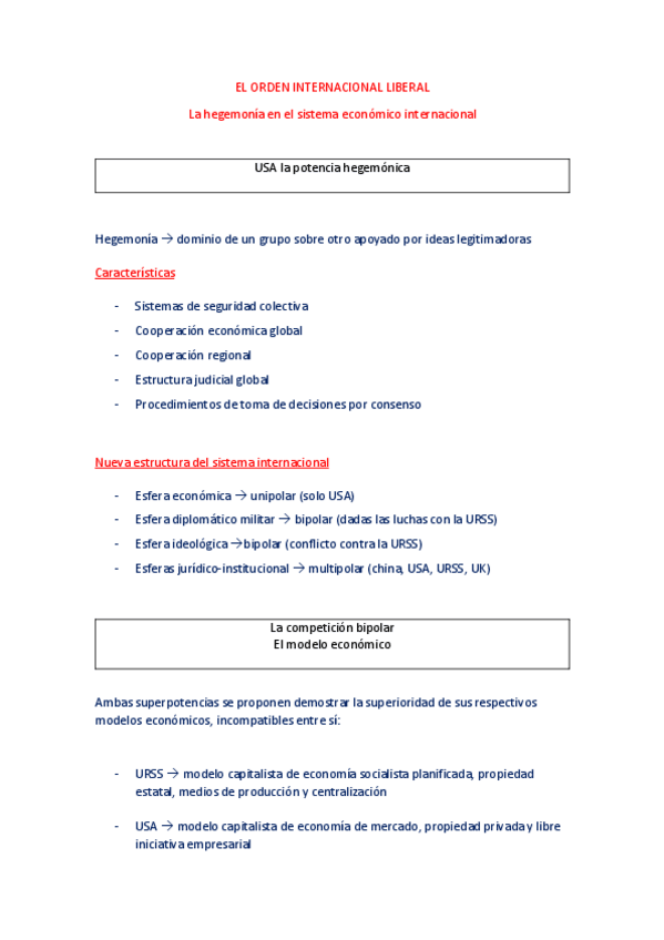 Apuntes tema 1 a introduction to the contemporary international system post Cold War