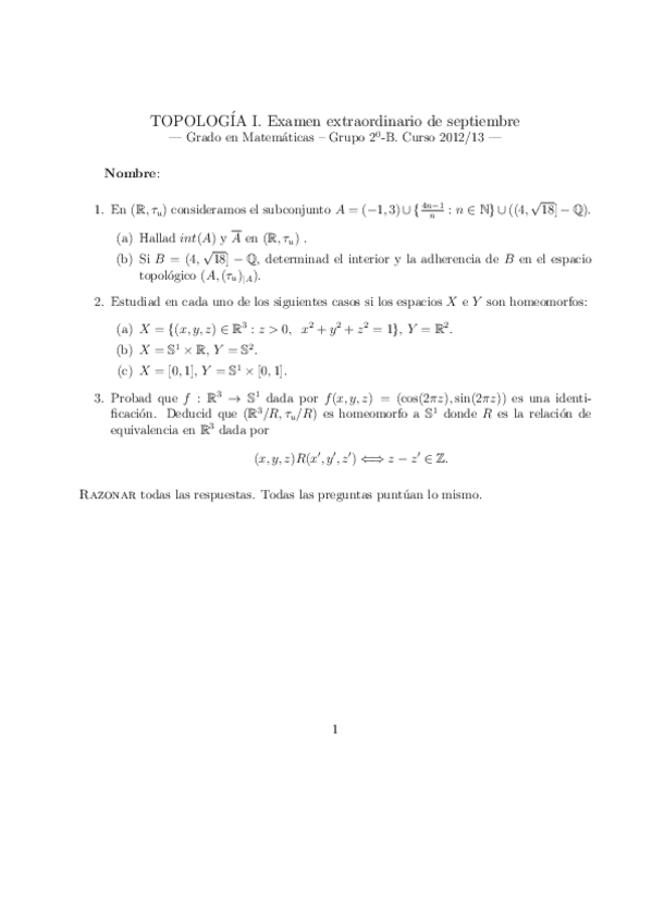 He publicado nuevos examenes de 2º Topología I: Examenes