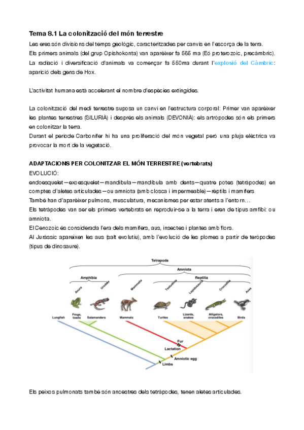 He publicado nuevos apuntes de 1º Biologia: Introducció a la Biomedicina: Resum-T8-Colonitzacio-del-mon-terrestre.pdf