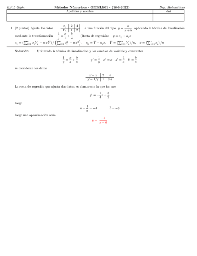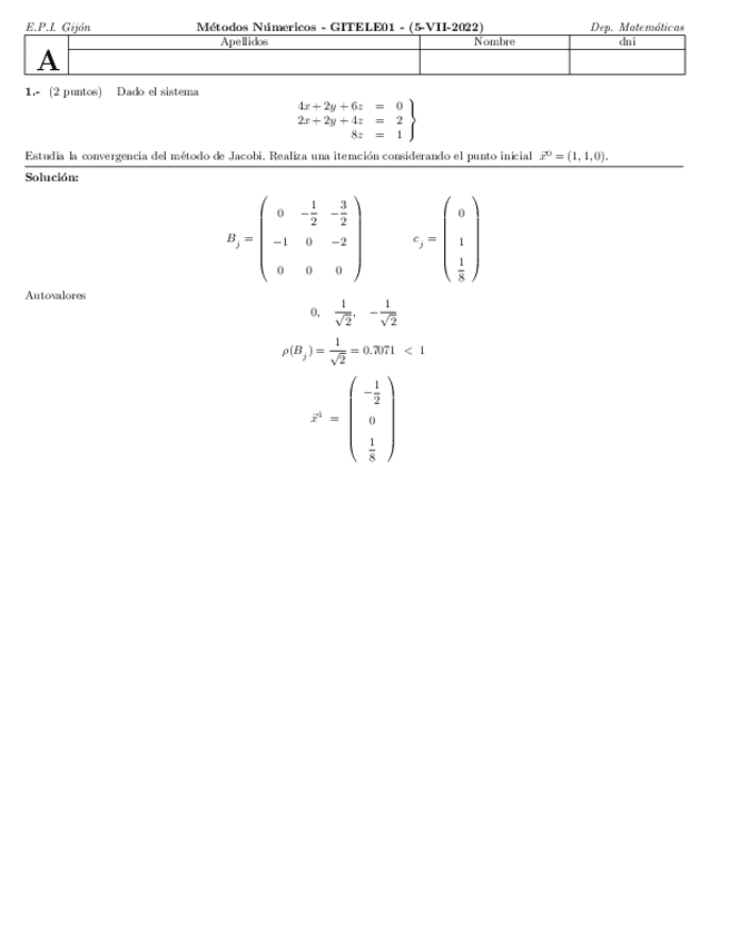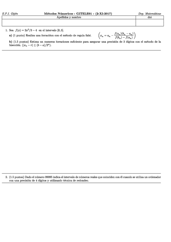 Exámenes Métodos Numéricos
