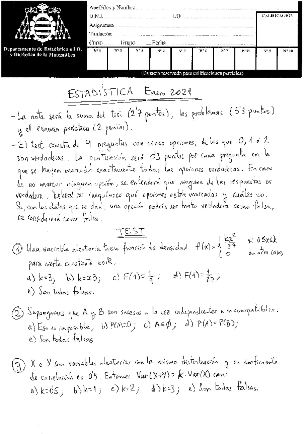 Exámenes Estadística Teleco