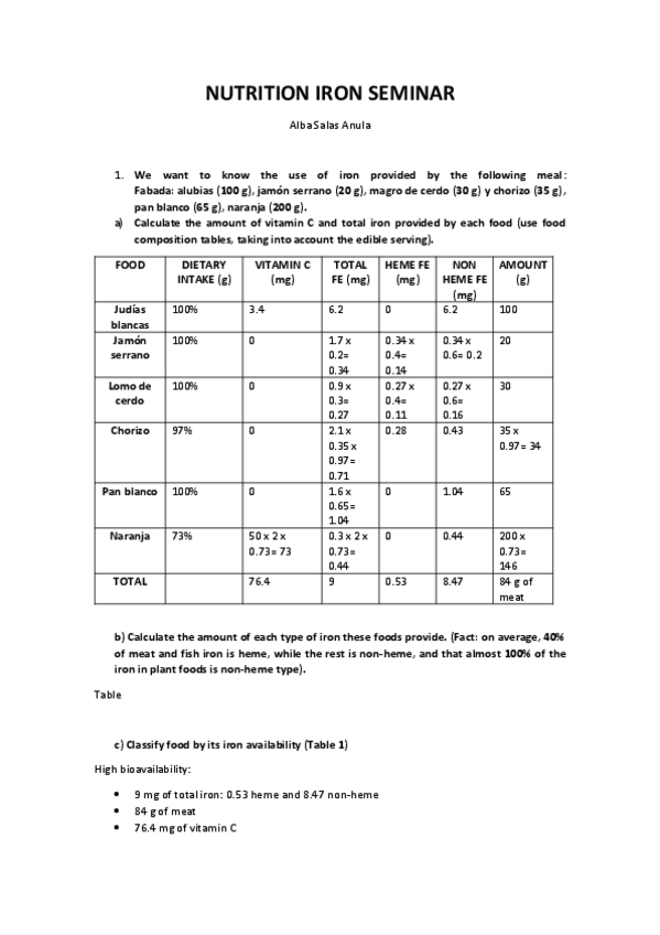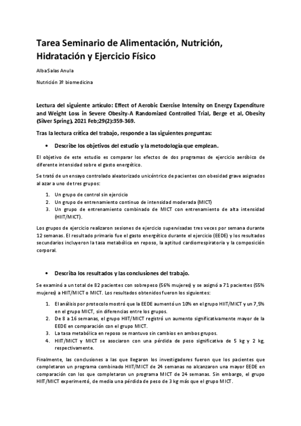 Nutrición tareas bloque I inglés