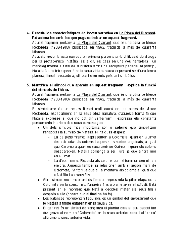 Literatura completa de Mercè Rodoreda, preguntas EBAU completas y frecuentes