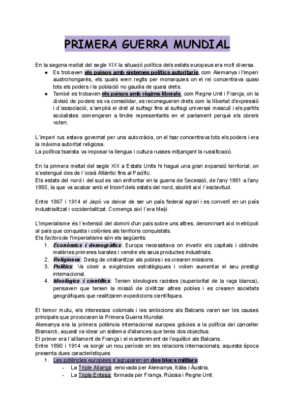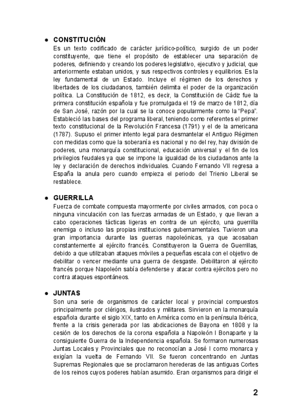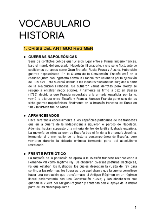 Todo el vocabulario de historia, siglos XIX y XX, con su contexto histórico, completas para examen EBAU