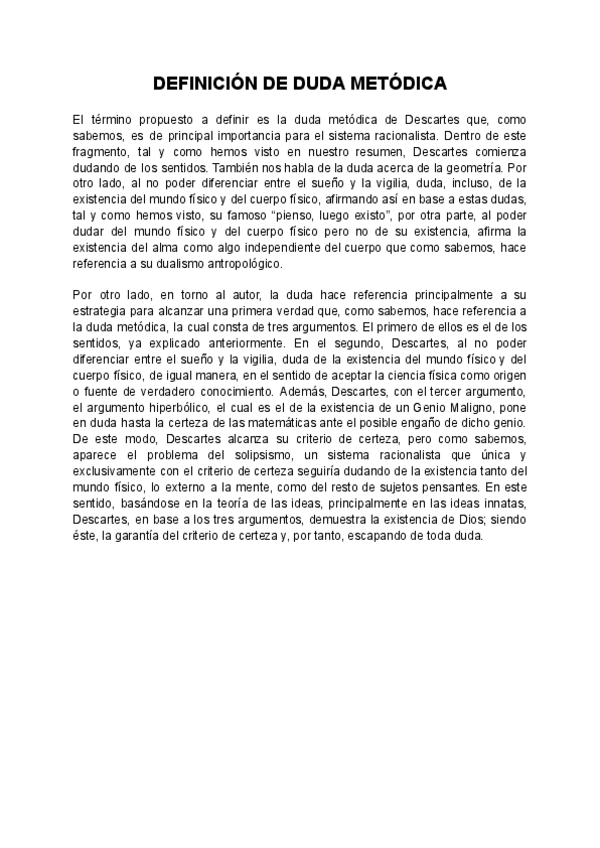 Definición completa de Duda Metódica acorde con lo que piden en las pruebas EBAU