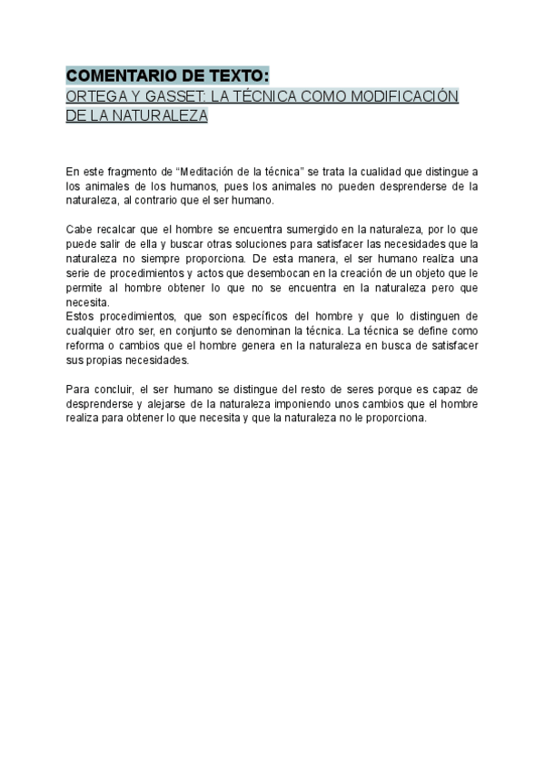 Comentario de texto sobre "Meditación de la técnica" de Ortega y Gasset