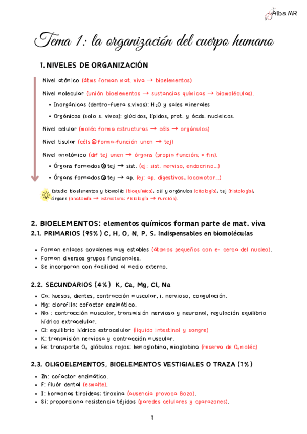 TEMA 1. ORGANIZACIÓN DEL CUERPO HUMANO