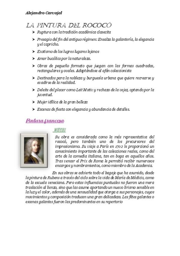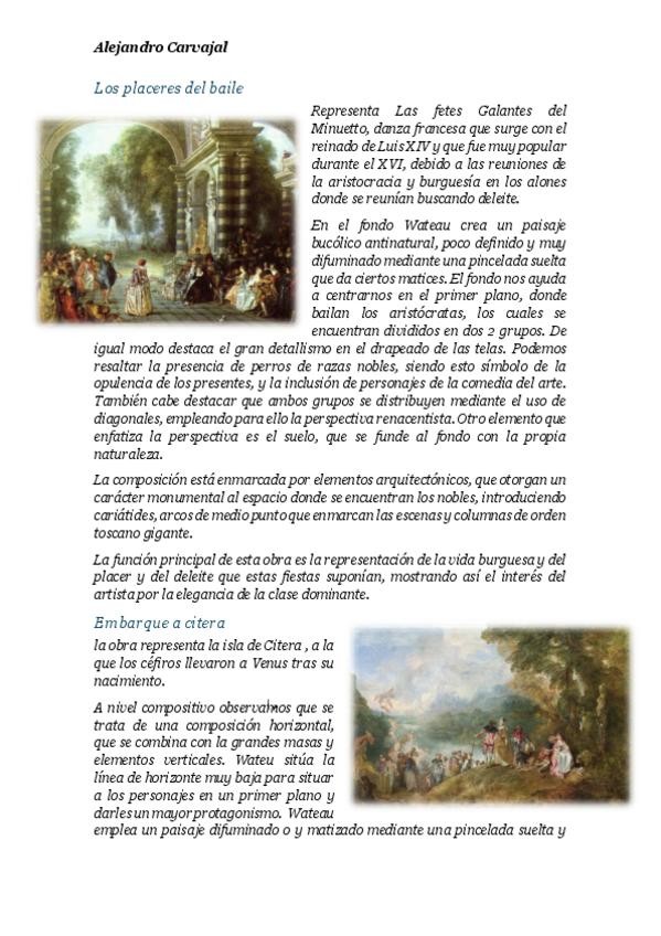 Apuntes de comentarios de imágenes del bloque de arte Neoclásico y de Pintura del Rococó con lo que logre obtener un 7/7 en el examen final.