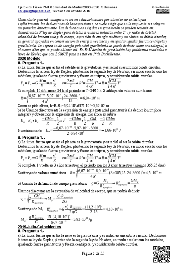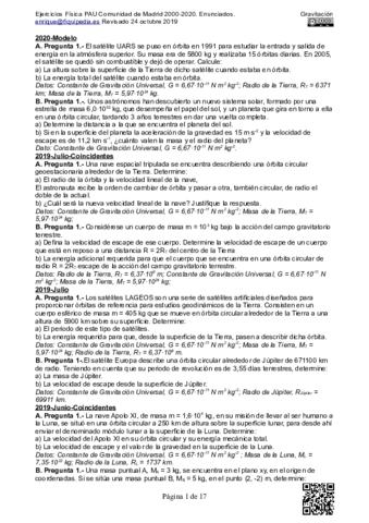 He publicado nuevos examenes de Física: INTERACCIÓN GRAVITATORIA
