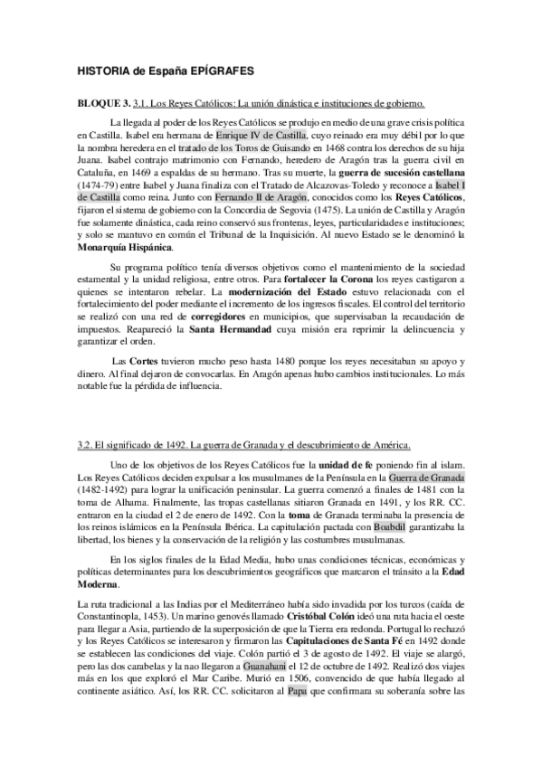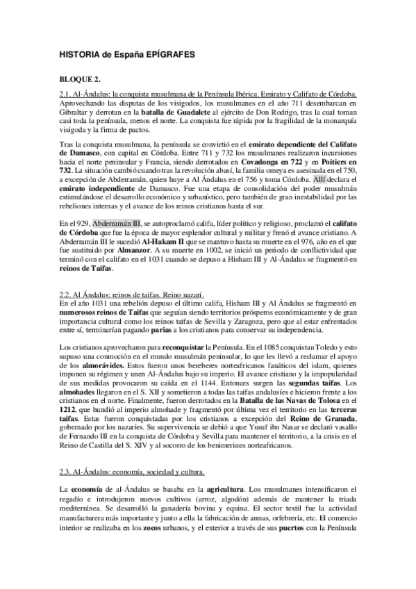 Historia de España Bloques Cortos