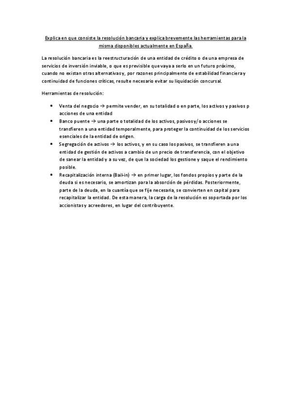 He publicado nuevos examenes de 3º Sistema Financiero Español: Explica-en-que-consiste-la-resolucion-bancaria-y-explica-brevemente-las-herramientas-para-la-misma-disponibles-actualmente-en-Espana.pdf