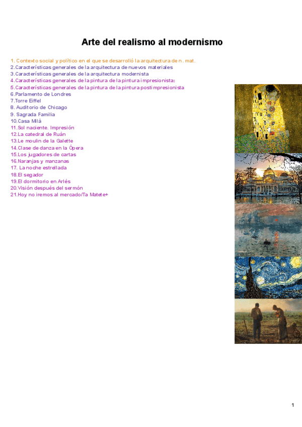 Hay comentarios, contextos y características redactadas desde el arte griego hasta el modernismo