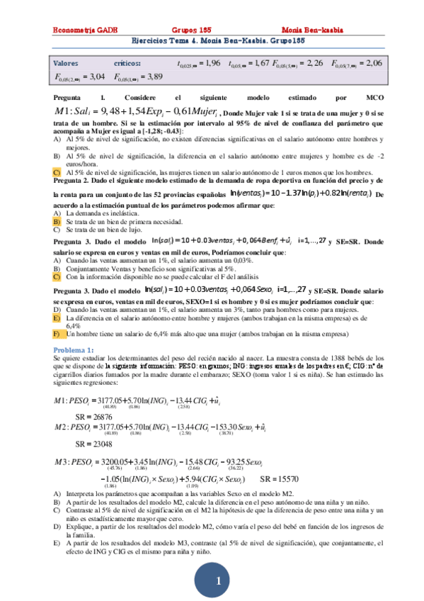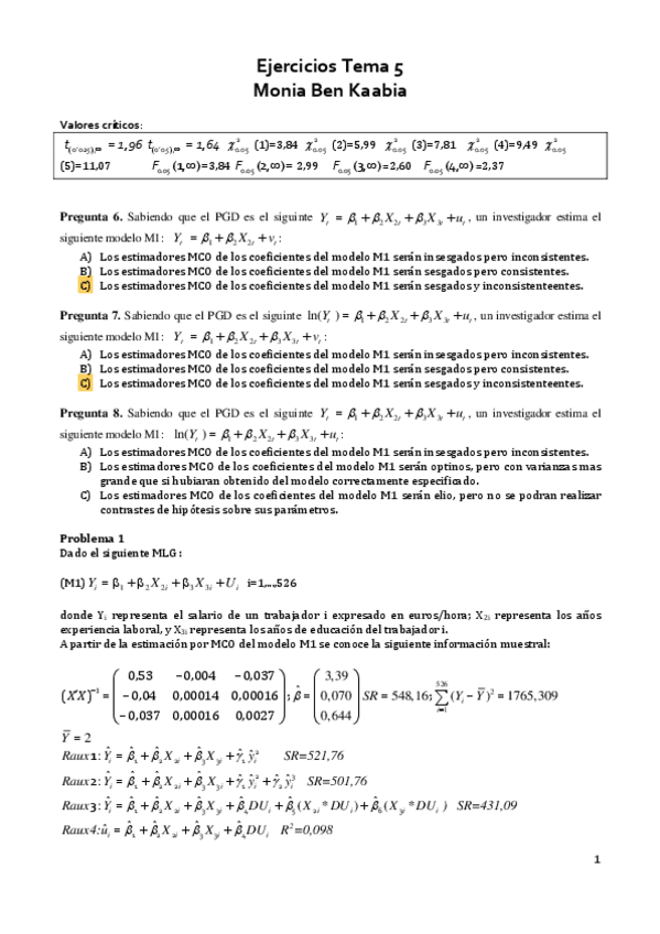 He publicado nuevos apuntes de 3º Econometría: Ejercicios de examen resueltos