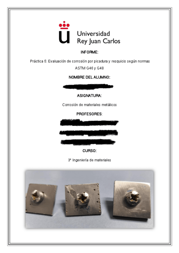 He publicado nuevos practicas de 3º Corrosión de materiales metálicos: TODOS LOS INFORMES CORROSIÓN