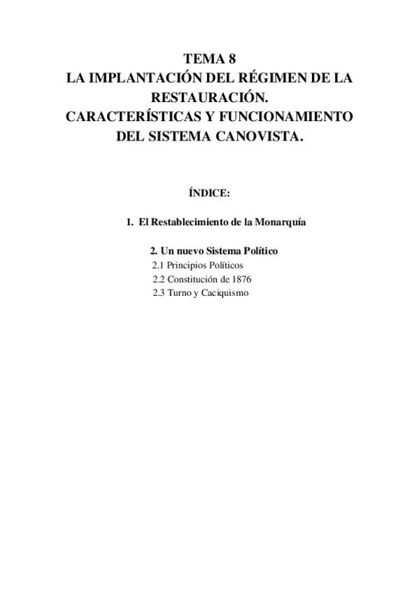 He publicado nuevos apuntes de Historia de España: Tema-8-LA-IMPLANTACION-DEL-REGIMEN-DE-LA-RESTAURACION.-CARACTERISTICAS-Y-FUNCIONAMIENTO-DEL-SISTEMA-CANOVISTA..docx