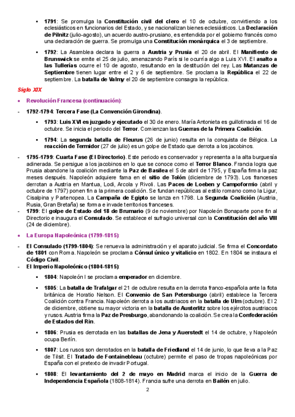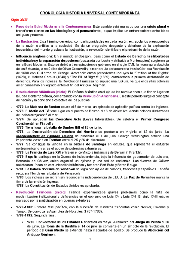 Resumen cronológico de los principales procesos históricos desde el siglo XVIII hasta la II G.M.