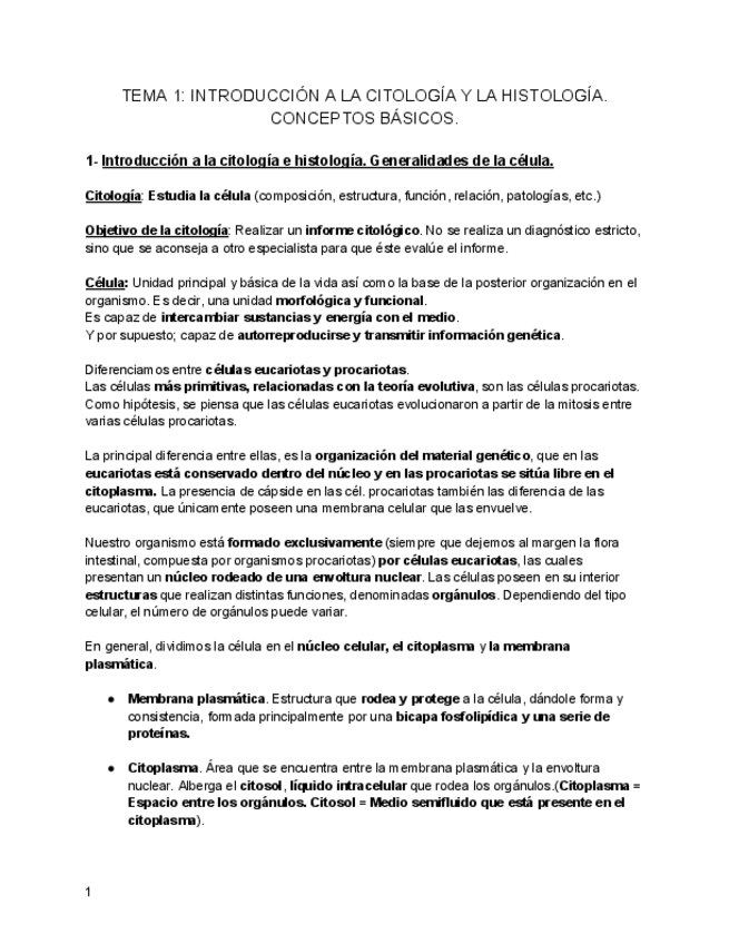 Apuntes en castellano de la asignatura de citología al completo.