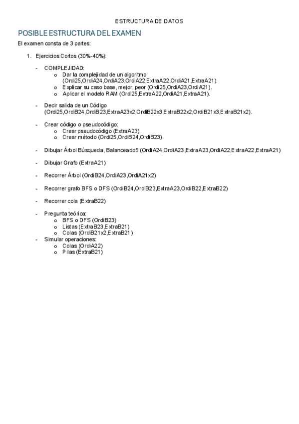 Posible estructura, analizando lo que ha caido desde el 2020-2021 hasta la ordinaria, separando por preguntas y analizando lo que piden en cada examen o apartado del examen