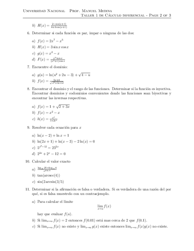 He publicado nuevos ejercicios de 1º Cálculo Diferencial: Taller-1-calculo-diferencial-unal-2019-I.pdf