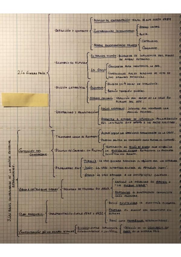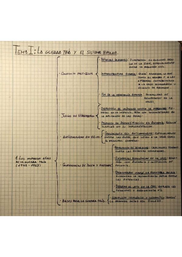 Esquemas que sirven para repasar el tema 1 de España y mundo actual por puntos. No tienen suficiente información como para estudiar solo esto de cara al examen, pero sirven para repasar.