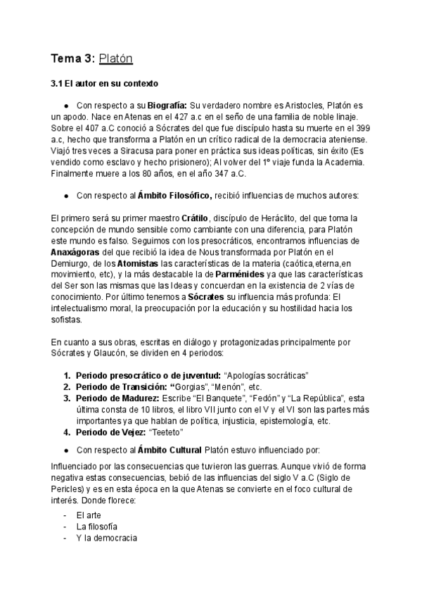 Aqui encontrareis el contexto del autor con un ejemplo y teoria de Platón