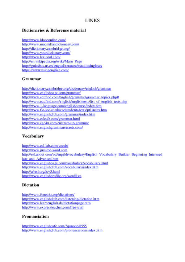 He publicado nuevos apuntes de 2º Lengua Inglesa Ii: Links para aprobar Lengua inglesa II.pdf