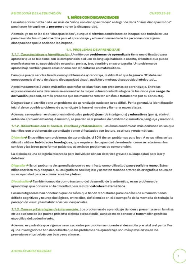 Apuntes del Tema 1 de Psicología de la Educación con libro actualizado 2026