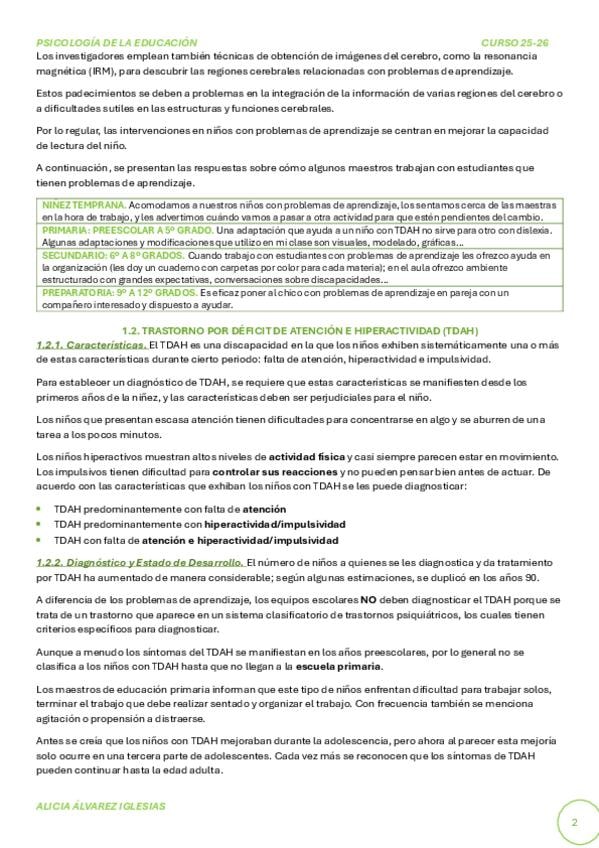 Apuntes del tema 2 de Psicología de la Educación con el libro actualizado 2026