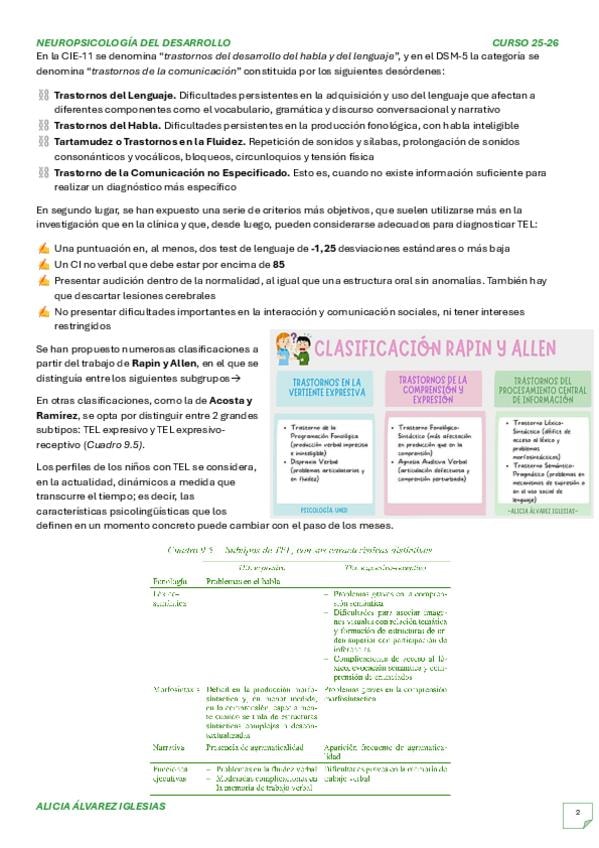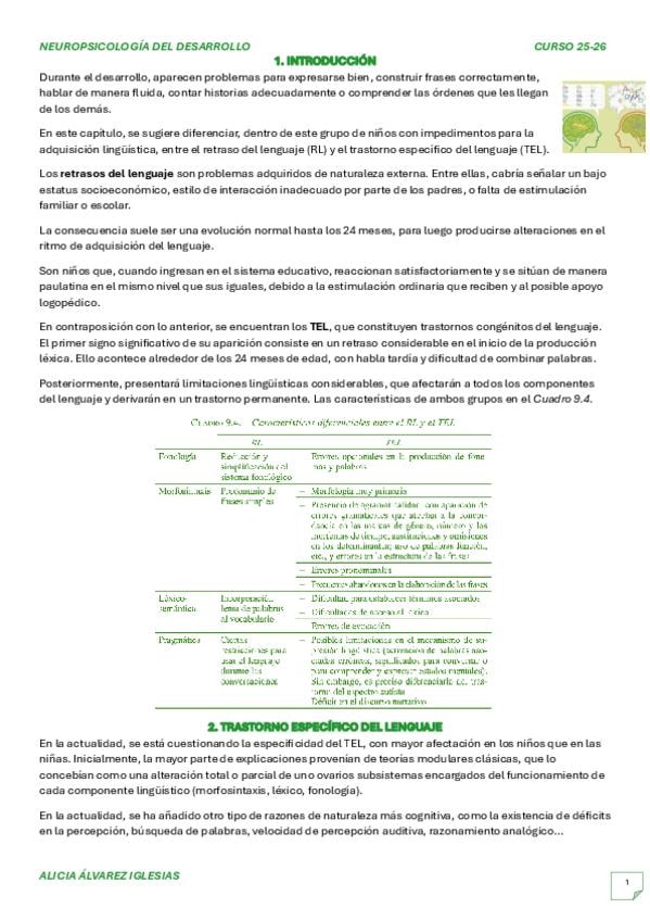 Apuntes del Tema 9 de Neuropsicología del Desarrollo con libro actualizado 2026