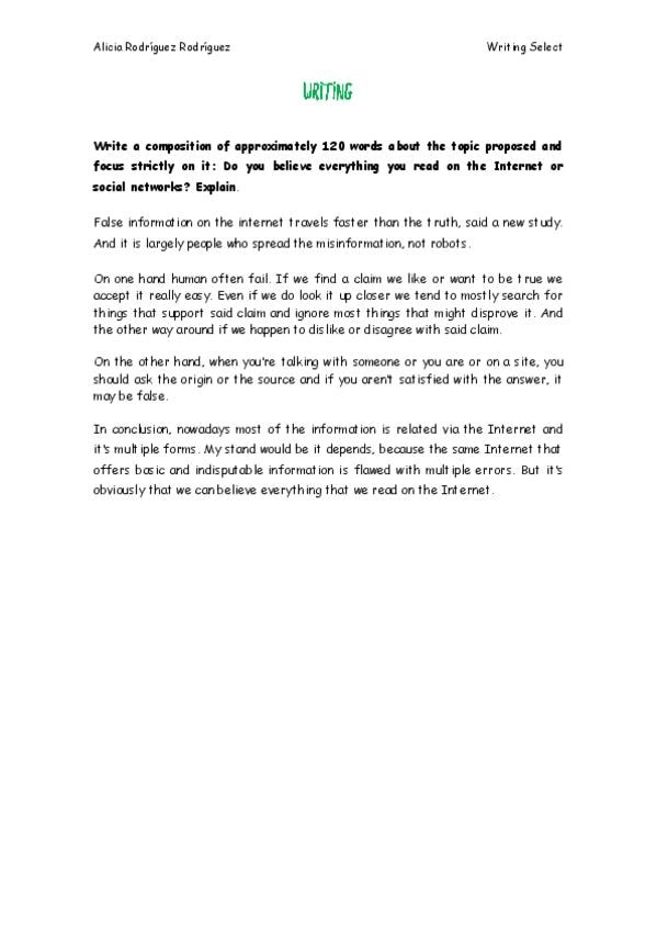 Inglés, redacciones EBAU