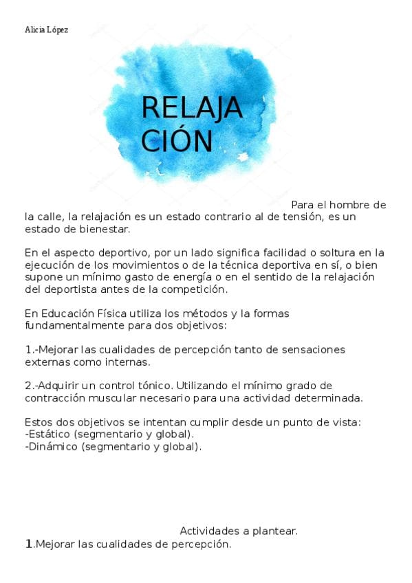 He publicado nuevos apuntes de 1º Motricidad, Salud y Desarrollo Integral en la Infancia: RELAJACION.odt