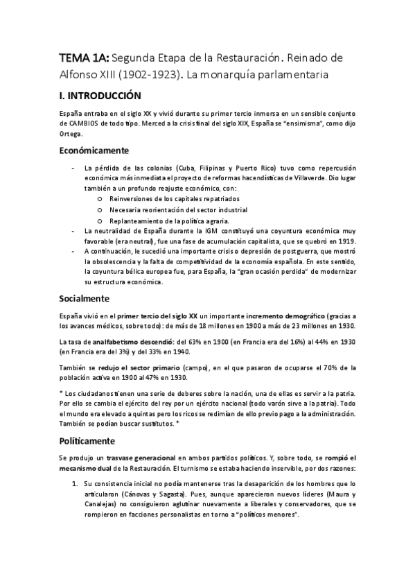 APUNTES HISTORIA ESPAÑA ACTUAL