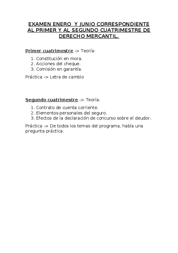 He publicado nuevos examenes de 4º Derecho Mercantil II: EXAMEN ENERO Y JUNIO CORRESPONDIENTE AL PRIMER Y AL SEGUNDO CUATRIMESTRE DE DERECHO MERCANTIL.docx