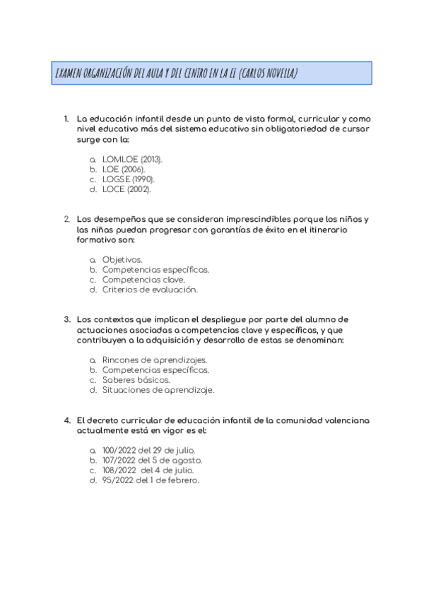 He publicado nuevos examenes de 2º La Organización del Aula y del Centro de Educación Infantil: PREGUNTAS-EXAMEN-Y-REPASO-ORGANIZACION-DEL-CENTRO-Y-AULA-EN-LA-EI.pdf