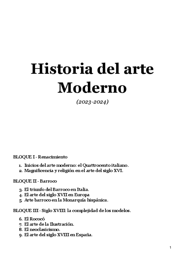 Apuntes completos, Historia del Arte en la Edad Moderna