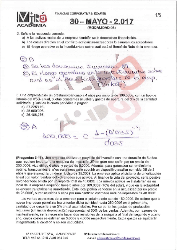 He publicado nuevos examenes de 3º Finanzas Corporativas: EXAMENES