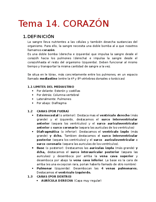 He publicado nuevos apuntes de 1º Anatomía e Histología Humanas: Tema 14. CORAZÓN.docx
